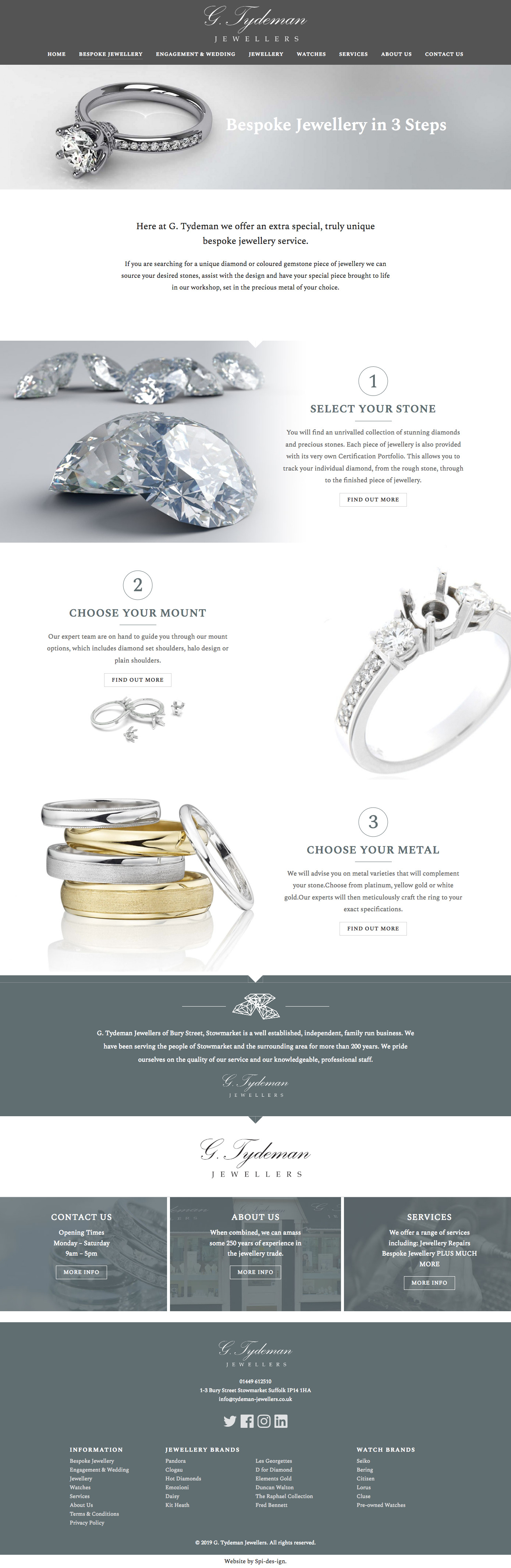 G. Tydeman Jewellers of Bury Street, Stowmarket is a well established, independent, family run business. They have been serving the people of Stowmarket and the surrounding area for more than 200 years. They wanted a new website that reflected their commitment to quality and craftmanship while showcasing the range of their products and their state-of-the-art bespoke jewellery design services. They also wanted the ability to purchase from their collection of pre-owned, vintage watches so we built a bespoke, easy-to-use reservation system.